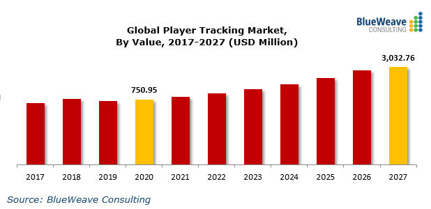 A recent study by the strategic consulting and market research firm BlueWeave Consulting revealed that the global player tracking market was worth USD 750.95 million in 2020. The market is further anticipated to reach USD 3,032.76 million in 2027 with a significant CAGR of 24.6% during the forecast period, i.e., 2021-2027.