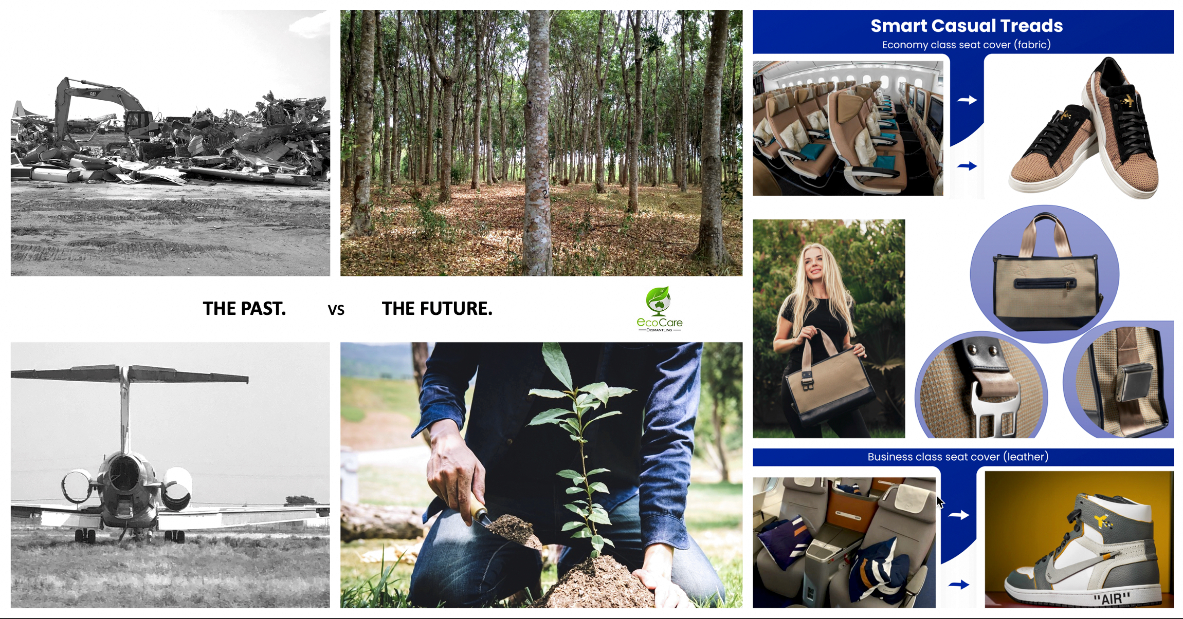 NAAI is pursuing obtaining carbon credits for recycled aluminum and plastics versus virgin sourcing (which has much greater carbon emissions). In the meantime, the recycling process will include some of the recycled plastics going into the fabrication of plastic for new aircraft, taking the first step toward a circular, sustainable supply chain. In addition, NAAI has developed upcycling methods for converting scrap materials into other products such as handbags, shoes, furniture, and watches. All of which will come with recycling authenticity stamps.