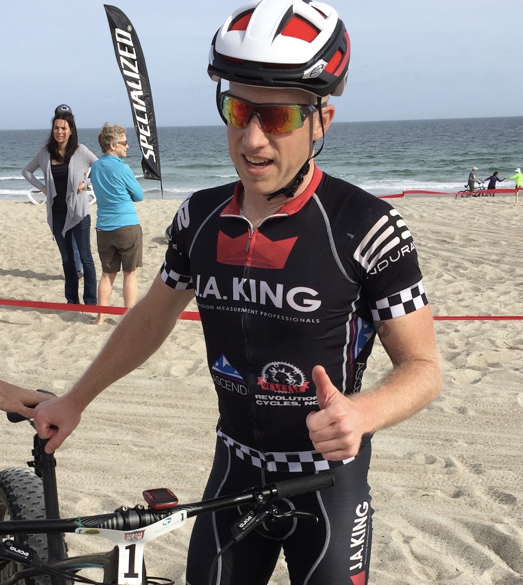 “A fat bike is basically a mountain bike with the ability to accommodate a large tire and wheel combination for the sand. The elite division race is very challenging and stretches the endurance level of the most seasoned riders. Half the course is a real grind through soft sand on a one-mile oval; the other half is easier and dedicated to speed on packed sand.