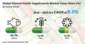 NEW YORK, UNITED STATES, February 3, 2022 /EINPresswire.com/ -- In various parts of the world, health supplements are included as a part of a diet that beholds higher nutritional value. The status of these health supplements also plays a key role in their sales. A majority of consumers will prefer that these nutritional ingredients get derived from natural or organic sources. Persistence Market Research’s recently published study explores the global market for natural health supplements, projecting how the demand for natural health supplements will shape up in the years to come. And, the crux forecast of Persistence Market Research’s report goes – “In 2016, global natural health supplements market was estimated to be valued at US$ 36,803.52 Mn; which is assessed to increase at a CAGR of 8.0% to reach US$ 68,140.05 Mn by the end of 2024.”