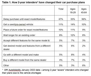The research on vehicle shortage responses is based on interviews with over 12,134 two-year intenders in January 2022.