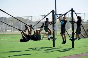Some custom equipment was needed in order to facilitate the training for the ROTC program. A 20 foot rope climb and cargo net station was designed to be installed as part of the outdoor layout and training equipment. Choose between all Climbing Ropes or a combination of Cargo Net and Rope Climbs. Bell ring option at top for users to notify others once the top has been reached! Quality MADE IN USA built for year around outdoor use.