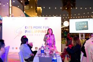 Philippine Department of Trade and Industry (PDTI) Assistant Secretary and Philippines @ Expo 2020 Dubai Alternate Commissioner General Rosvi C. Gaetos during her opening remarks at the 3rd leg of the Philippines Food Festival