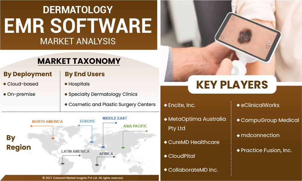 SEATTLE, WASHINGTON, UNITED STATES, February 10, 2022 /EINPresswire.com/ -- Coherent Market Insights has announced new analysis on Dermatology EMR Software Market Status 2022-2028 which has been prepared based on an in-depth market analysis with inputs from industry experts and top vendors in the business. The report covers the market landscape and its development prospects over the coming years. The report also contains a discussion of the key vendors operating in this market.