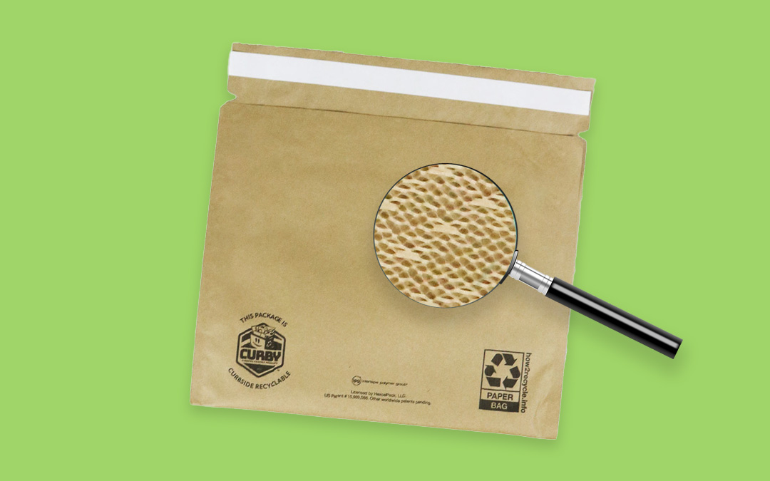 Plastics-based mailer envelopes, which have long been a common shipping choice for e-commerce businesses, are not easily recyclable or sustainable in nature. The Curby Mailer™ is designed as the ideal eco-conscious alternative to poly bubble or kraft bubble mailer envelopes. Each mailer is lined inside with an innovative honeycomb-structured paper cushioning that offers significant environmental and product protection benefits over traditional padding materials like bubble or foam.