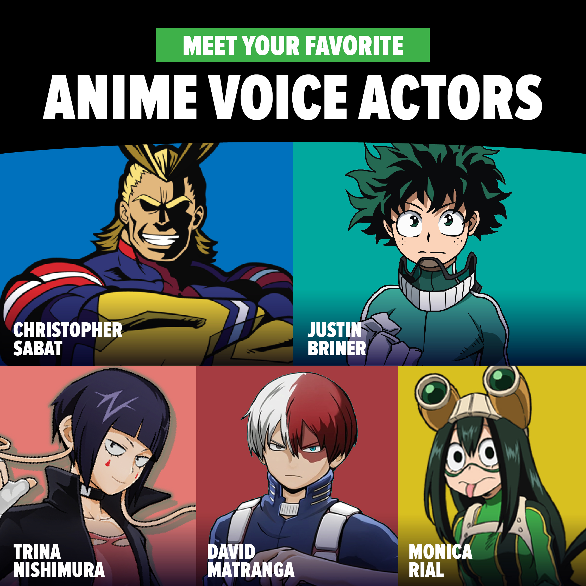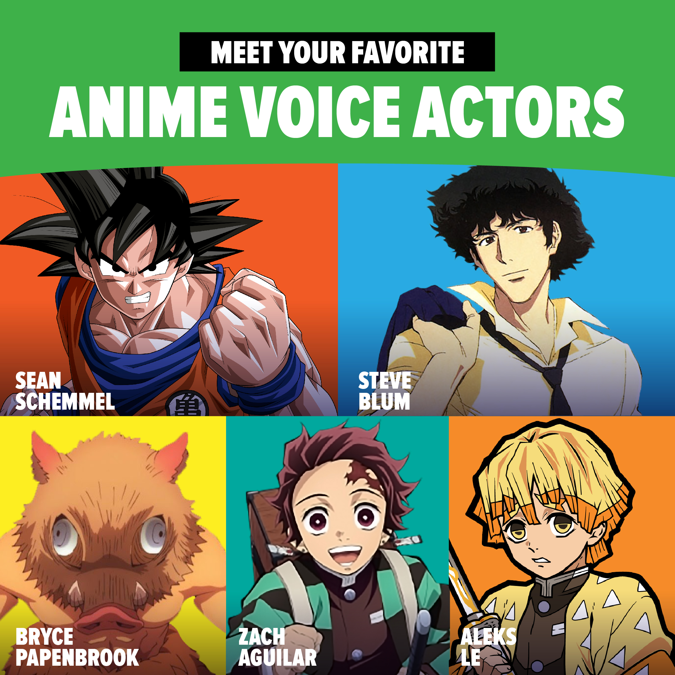 The talented lineup includes anime stars David Matranga, Justin Briner, Monica Rial, Trina Nishimura and Christopher Sabat (“My Hero Academia”); Zach Aguilar and Bryce Papenbrook (“Demon Slayer”); Sean Schemmel (“Dragon Ball Z”); and Steve Blum (“Cowboy Bebop”) as well as animation standouts Ken Page and Chris Sarandon (“The Nightmare Before Christmas”); Billy West (“Futurama”); Ashley Eckstein (“Star Wars”), Bret Iwan (“Mickey Mouse”); Ming-Na Wen (“Mulan”); and Christina Vee (“Miraculous”). Additional voice talent will likely be added to the roster as the event nears.