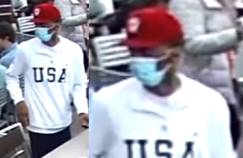 The suspect was captured by a surveillance camera and can be seen in the photos below: