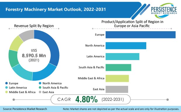 NEW YORK CITY, UNITED STATES , UNITED STATES, February 15, 2022 /EINPresswire.com/ -- As per Persistence Market Research analysis, the global forestry machinery market is projected to be valued at around US$ 8.5 Bn in 2021, expanding at a CAGR of 4.7% over the forecast period of 2021-2031. Consistent consumption of timber and natural wood by end-use sectors such as construction, energy, and agro products is set to drive the sales of forestry machinery over the coming years.