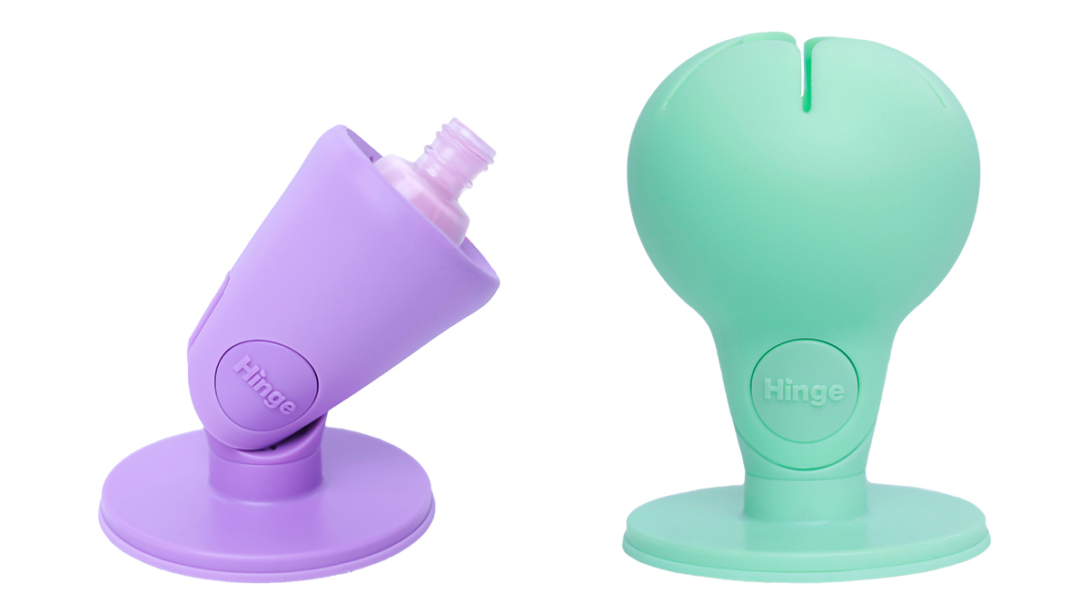 Like the original wearable Tweexy silicone ring (www.tweexy.com), Tweexy Hinge allows the polisher to use all their favorite nail polish brands, regardless of their various shapes, sizes, and capacities. Co-Inventors Elizabeth Boyle and Mark Miclette designed the Tweexy Hinge so it would work vertically in an upright position or at a 45-degree angle. The person polishing can also adjust the bottle angle securely within the Hinge receptacle. Circular, square, quarter moon, oval, rectangular, triangle, and other jewel shapes all hold well in the Tweexy Hinge.