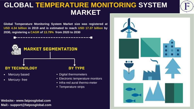PHILADELPHIA, UNITED STATES , February 17, 2022 /EINPresswire.com/ -- Fatpos Global has released a report titled “Global Temperature Monitoring System Market - Analysis of Market Size, Share & Trends till 2020 and Forecasts to 2030” which is anticipated to reach USD 17.37 billion by 2030. According to a study by Fatpos Global, the market is anticipated to portray a CAGR of 13.79% between 2020 and 2030. According to the report, Temperature monitoring devices are essential to ensure safe and efficient patient care. Temperature control is often important to avoid situations of hypothermia or hyperthermia. Thermoregulation or temperature management is necessary to avoid any antigenic reaction, infection, or inflammation. These devices can also be used for home care and have gained considerable popularity due to their cost-effectiveness and comfort. Rising technical advancements in the self-care industry, growing demands for disposable thermometers, and the advancement of cost-effective and accurate devices due to intense competition are the main drivers of the market for temperature monitoring systems. Temperature monitoring devices are essential to ensure safe and efficient patient care.