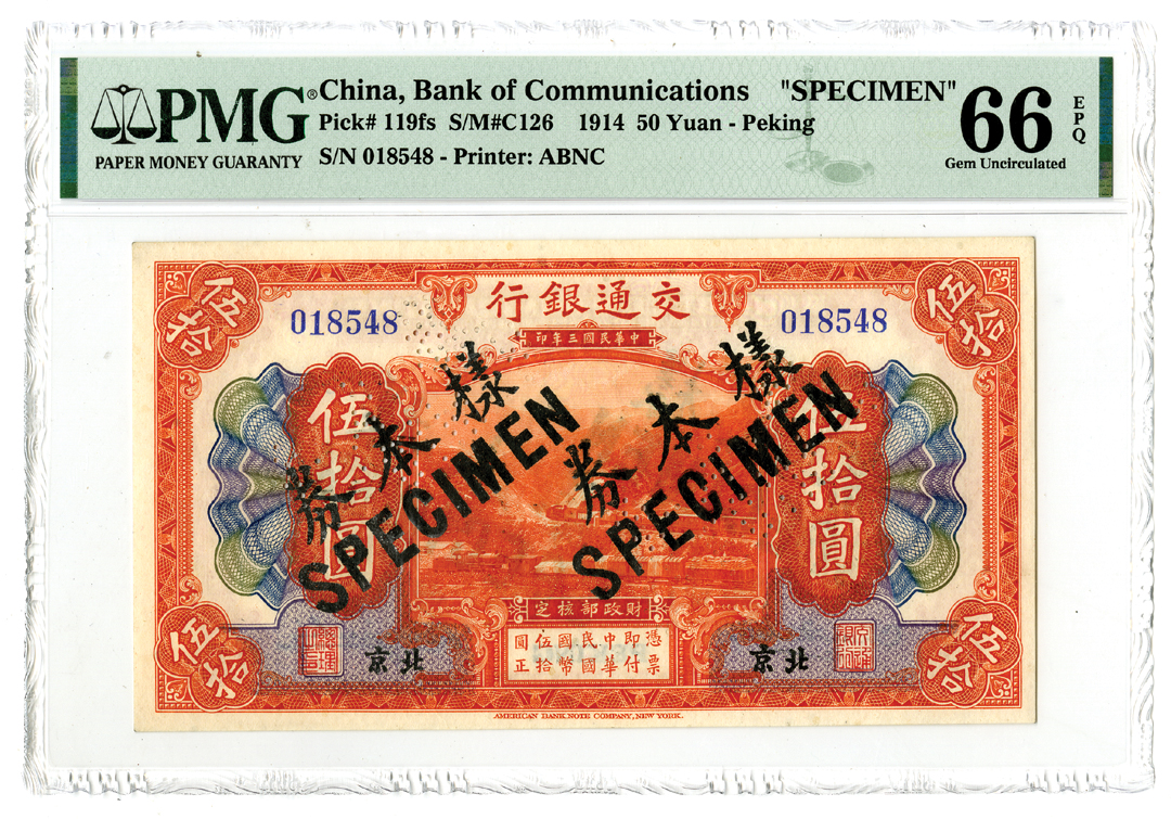 The auction begins with World Banknotes, from countries Angola to Yugoslavia, highlighted by 137 lots of Chinese banknotes and bonds and 69 lots of Russian banknotes, with all of these from an old-time collection being offered for the first time at auction. Some of the many Chinese banknote highlights include a Bank of China, 1912, $1, “Peking” Branch Issue rarity; 1919, Shanse Provincial Bank, “Tientsin” Branch issue discovery note that was previously unlisted; Central Bank of China, 1949 Unlisted Face & Back Essay Banknote, Gold Yuan Issue; dozens of desirable and rare Chinese high-grade banknotes; and a Bank of Taiwan - Kinmen Branch. 1955 high-grade issue banknote. Additional highlights of the World Banknote section include a desirable Lebanon, Banque de Syrie et du Grand-Liban, 1925, 25 Piastres, P-2 banknote rarity; a Mexico, 1897, highest graded and issued banknote, the only example graded in the PMG census with no examples of this type ever having been offered previously at auction; and, 3 different Mongolia, 1941 issue Specimens from the Commercial and Industrial Bank rarely seen in this format.