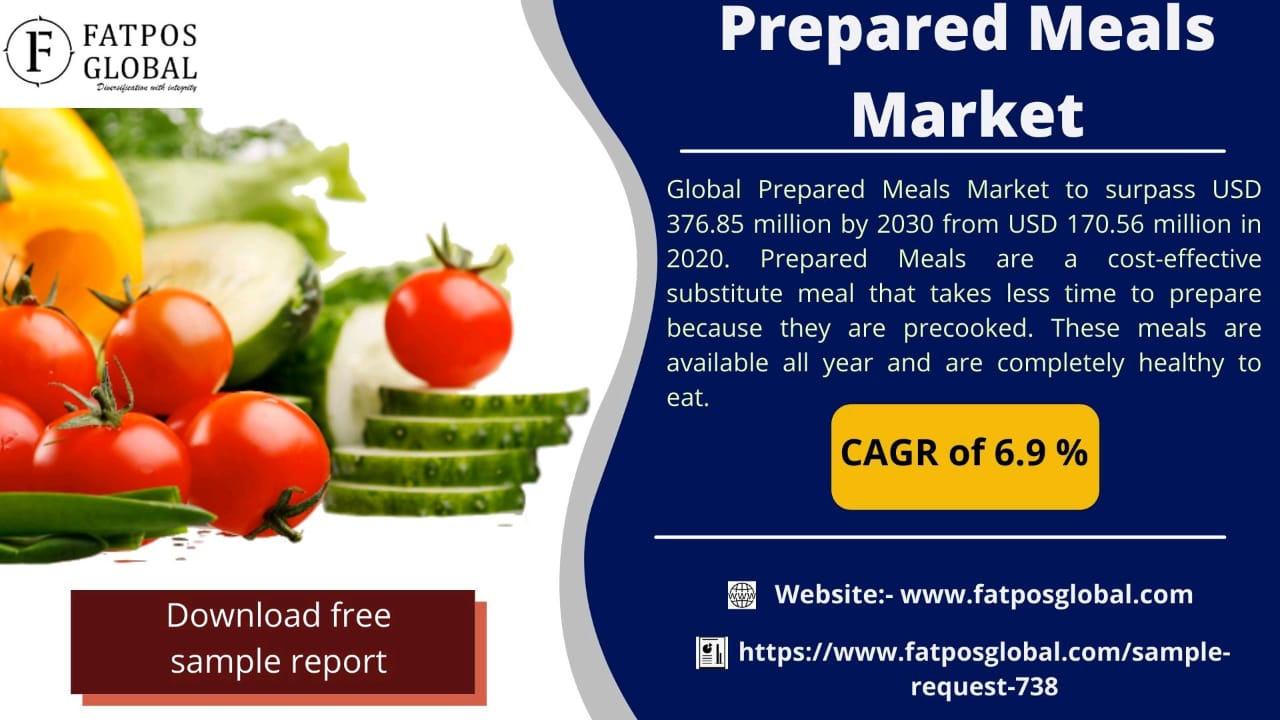 PHILADELPHIA, UNITED STATES , February 22, 2022 /EINPresswire.com/ -- Fatpos Global has released a report titled “Prepared Meals Market - Analysis of Market Size, Share & Trends for 2019 – 2020 and Forecasts to 2030” which is anticipated to reach USD 376.85 million by 2030. According to a study by Fatpos Global, the market is anticipated to portray a CAGR of 6.9% between 2020 and 2030. According to the report, shifting consumers’ preferences towards ready-to-eat food products due to the busy lifestyle of working individuals as well as hectic work schedules of college grads and students is projected to be a key factor for the market growth in the coming years. Besides, the rising demand for minimally processed and additive-free food products with an extended shelf life is expected to fuel market growth.