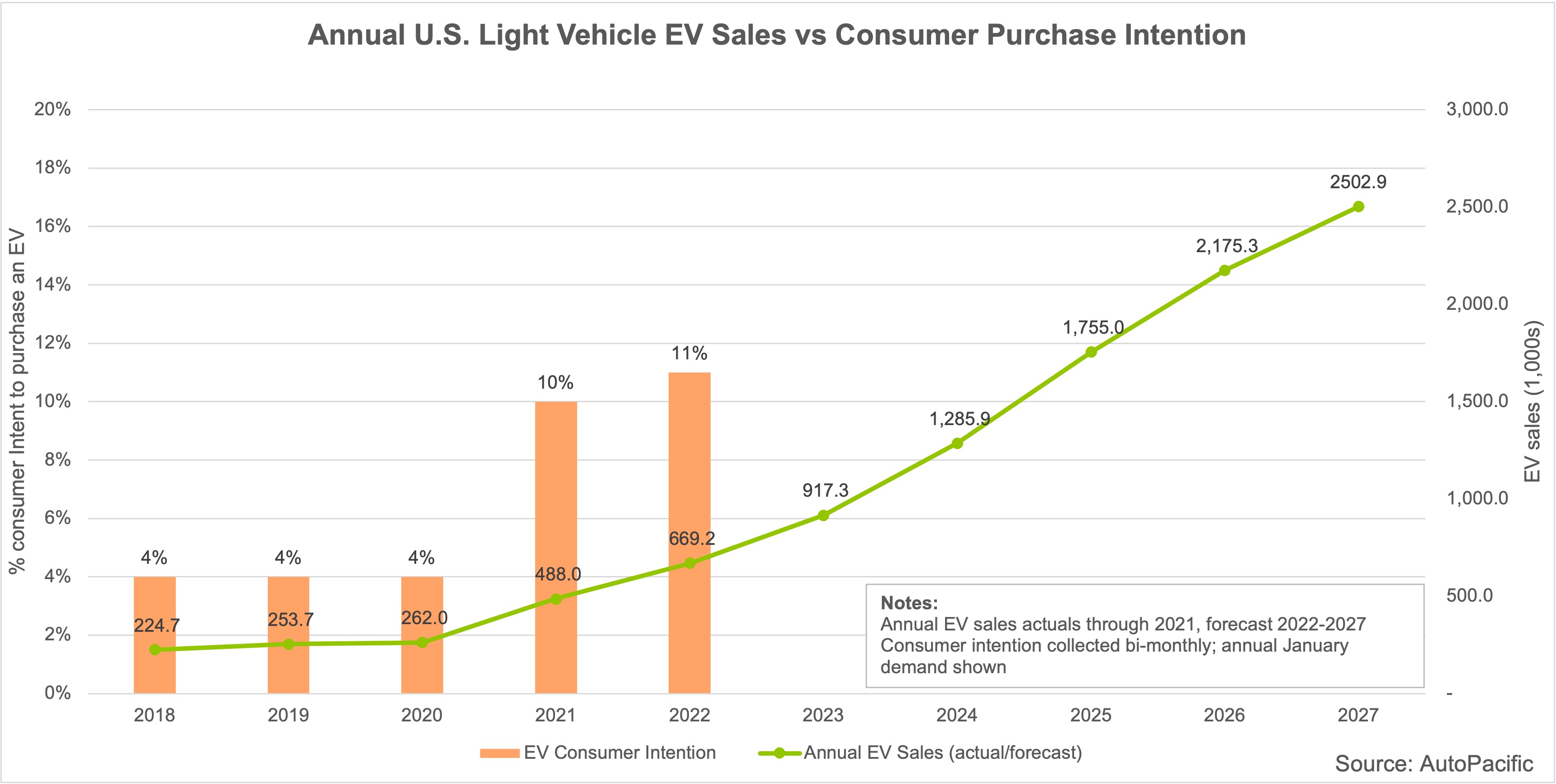 AutoPacific forecasts U.S. EV sales of nearly 700,000 units with strong growth throughout the 6-year forecast period as consumer demand rises.