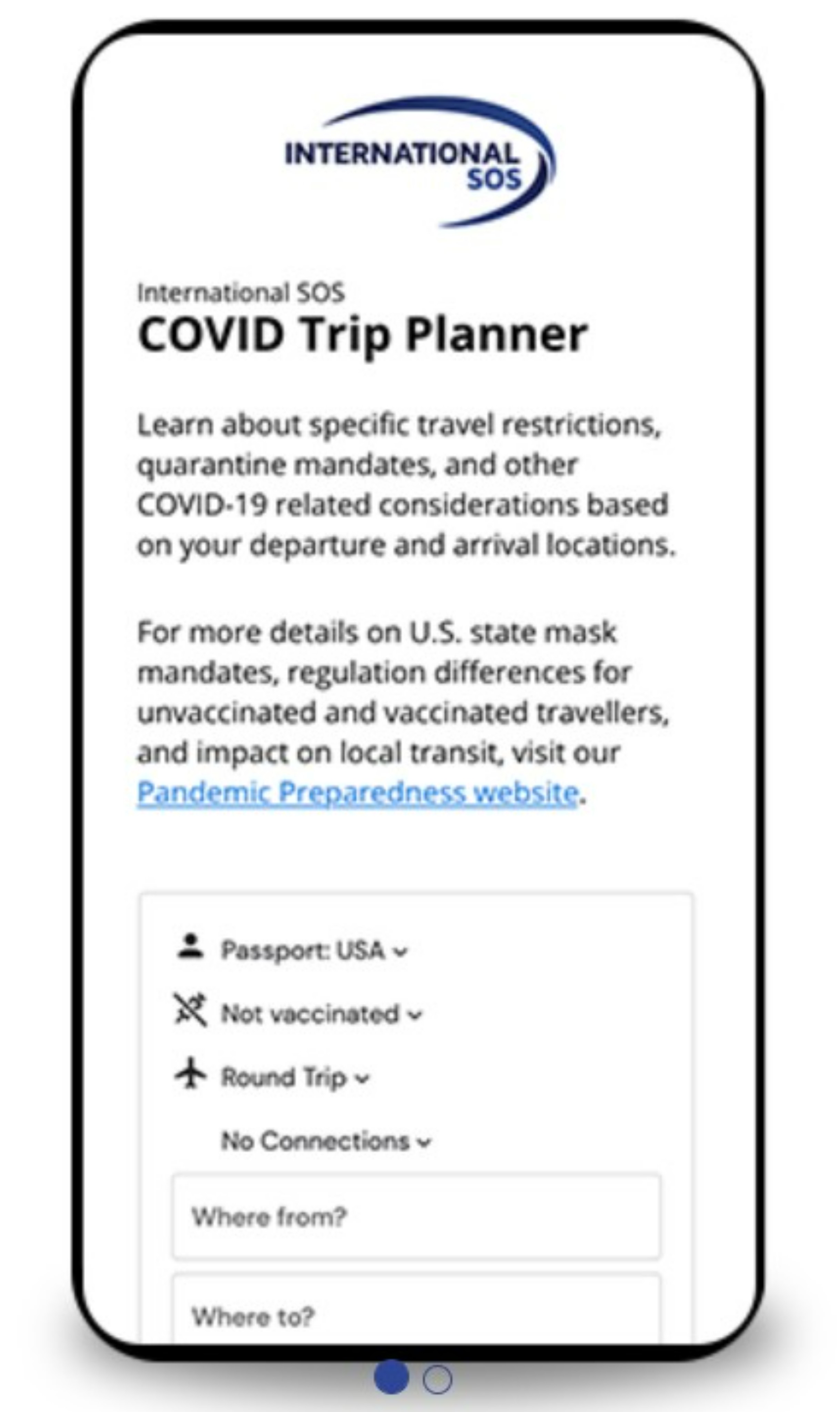 International SOS has been supporting thousands of organisations to navigate the complexity and changing regulations since the start of the pandemic. It continues to enhance its technology to support the needs of travellers. The launch of the COVID Trip Planner promotes a safe and sustainable return to travel for many organisations as they navigate the complexity of complying with the changing regulations and ensuring safe business travel decisions are made. Users of the COVID Trip Planner will also have access to International SOS Assistance Centre 24/7 Support, enabling them to connect with medical or security professionals whenever needed.