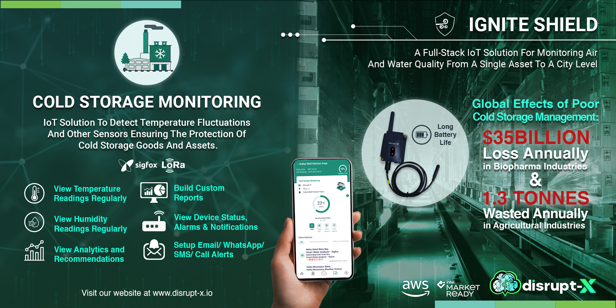 DUBAI, DXB, UAE, February 25, 2022 /EINPresswire.com/ -- Disrupt-X, a UAE-based IoT Development Company announced they’ve launched a Cold Storage Monitoring Solution under Ignite Shield, an Intel Market Ready Solution to detect temperature and humidity levels for cold storage facilities.