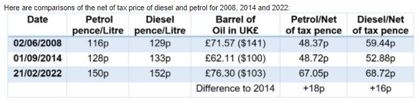 Cut Fuel Duty: The rocketing acceleration in the price of oil due in part, but not all down to the Russian invasion of Ukraine, must wake up the Treasury and the whole Conservative Government to stop adding to the monetary pain of the record high filling up prices at the pumps.