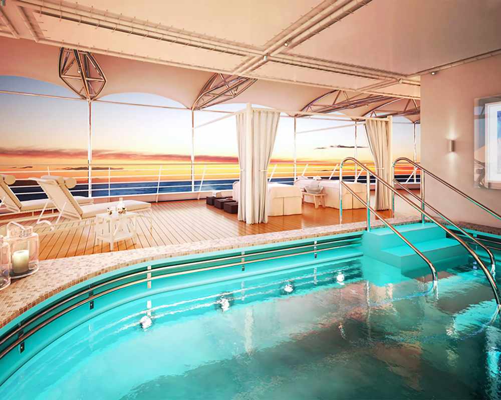 Silver Moon, with a passenger capacity of 596, continues the Silversea tradition of small, intimate ships offering larger-than-life experiences. Guests on Silver Moon have access to all-inclusive dining and beverage packages for the duration of their voyage. Beginning in Summer 2022, Silversea guests will be treated to free shore excursions even when they are not on the ship. The pool area has one of the largest pools on a ship of this size.