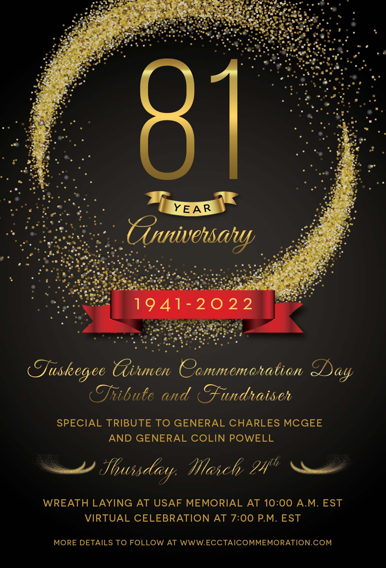 ECCTAI President’s Jerome Hodge invites you to “take this opportunity to celebrate the 81st Anniversary of these patriots. Join us in making this a momentous event.” Tickets to our virtual event cost $100. Click here to buy your tickets now.