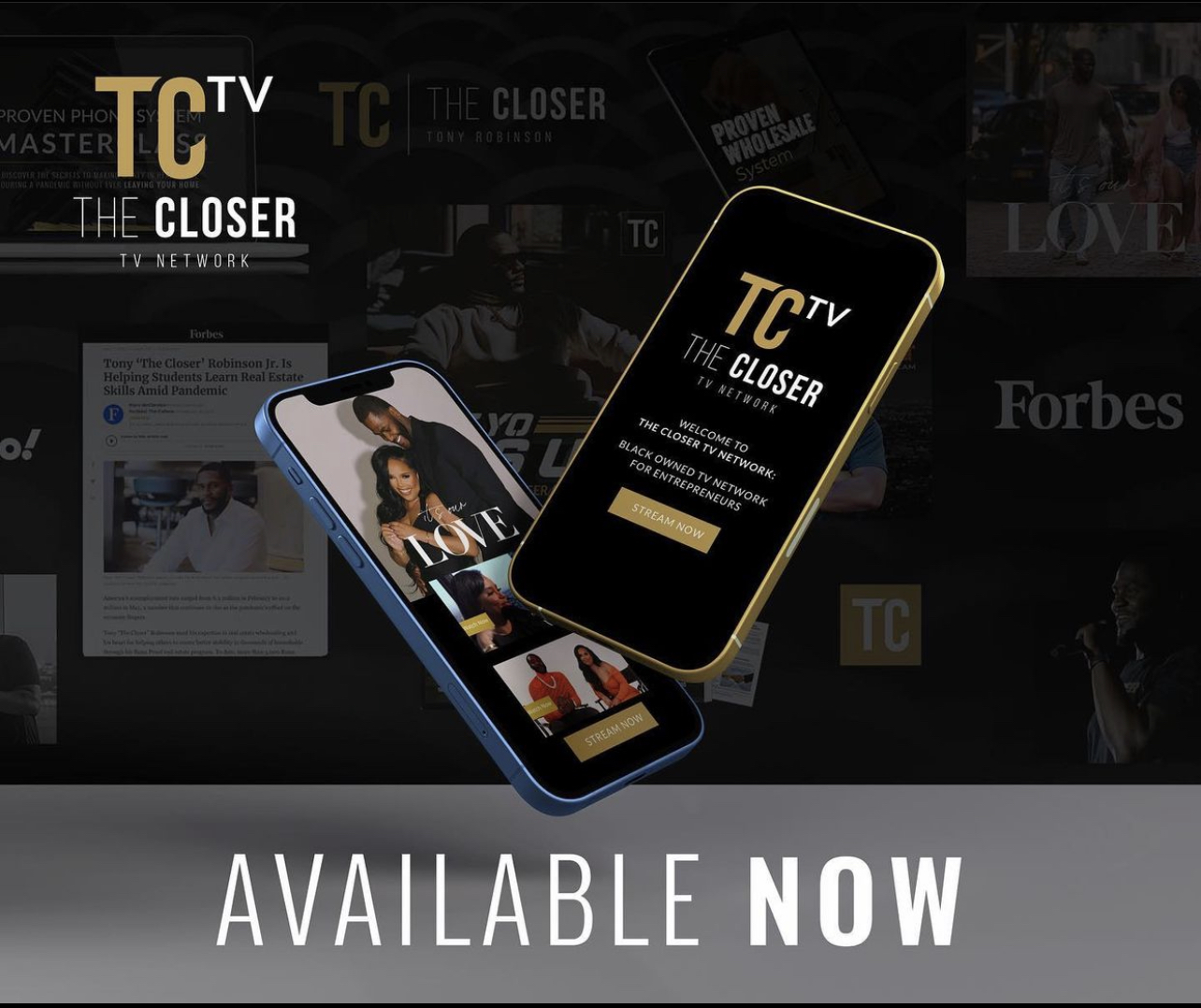 LOS ANGELES, CALIFORNIA, USA, March 8, 2022 /EINPresswire.com/ -- Tony 'The Closer' Robinson launches The Closer TV Network, the first-ever Black-owned TV Network dedicated to educating minorities in real estate, financial literacy, and philanthropy, amongst other topics.Former NFL player turned best selling author, real estate mogul, philanthropist, and social media personality Tony "The Closer" Robinson launches a first of kind television network, The Closer TV Network. Unhappy with other media platforms, Tony decided to remove all of his educational content and Youtube and create a platform where this content could live.