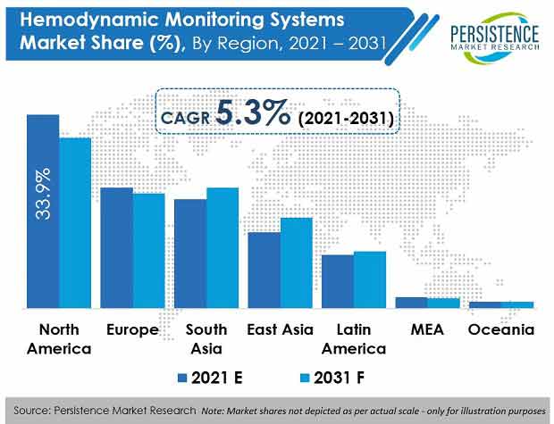 Opportunistic growth awaits throughout the forecast period in terms of new developments in non-invasive hemodynamic monitoring. Apart from this, emergence of implants for hemodynamic monitoring are expected to enhance the adoption of remote monitoring in personal and homecare settings. Increasing patient population in emerging economies is expected to drive demand for hemodynamic monitoring systems over the forecast period.