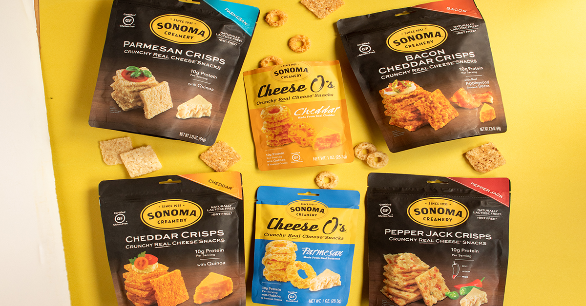 Sonoma Creamery sells its flagship cheese crisp line in Parmesan, Cheddar, Pepper Jack, Bacon Cheddar, Everything Cheddar and Savory Seed flavors, as well as its heritage line of fresh cheeses in slices, chunks, trays and nuggets. Sonoma also recently introduced a ground breaking line of all-natural, baked Pork Rind Cheese Crisps in two flavors, soon to be launched. Sonoma Creamery uses simple, high-quality ingredients to bake naturally shelf-stable, crunchy, real cheese snacks with unique inclusions that surprise, delight and nourish.