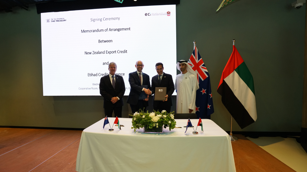 ECI and NZEC have agreed to promote UAE and New Zealand exports and export-related investments by providing tailored trade credit insurance and financial guarantees, backed by the governments of the UAE and New Zealand, respectively.