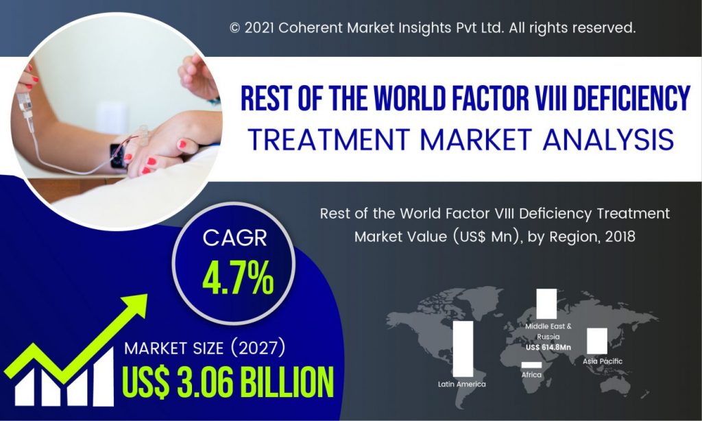 SEATTLE, WASHINGTON, UNITED STATES, March 11, 2022 /EINPresswire.com/ -- Rest of the World Factor VIII Deficiency Treatment Market Report 2022 cover complete modest view with the market stake and company profiles of the important contestants working in the worldwide market. The Rest of the World Factor VIII Deficiency Treatment market offers a summary of product specification, production analysis, technology, product type, considering key features such as gross, gross margin, revenue, cost.