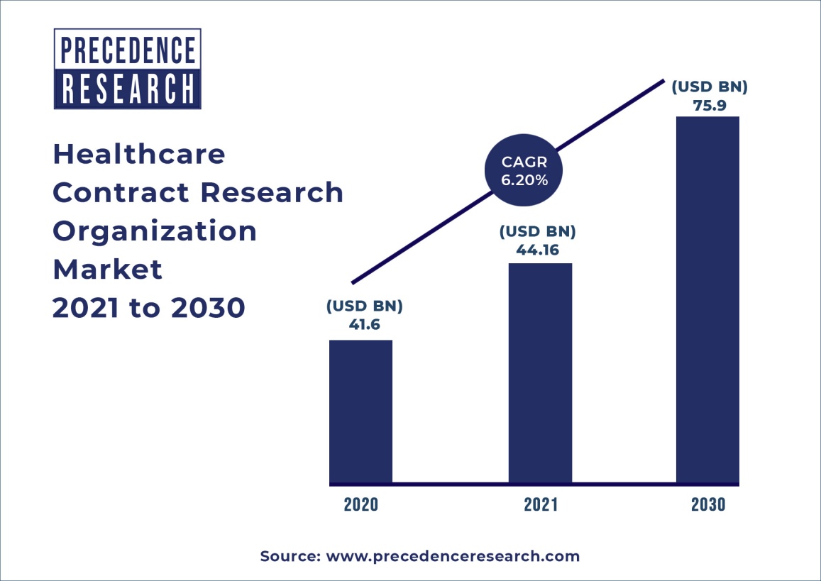 Ottawa, March 11, 2022 (GLOBE NEWSWIRE) -- According to Precedence Research, the global healthcare contract research organization market size was valued at USD 44.16 billion in 2021.