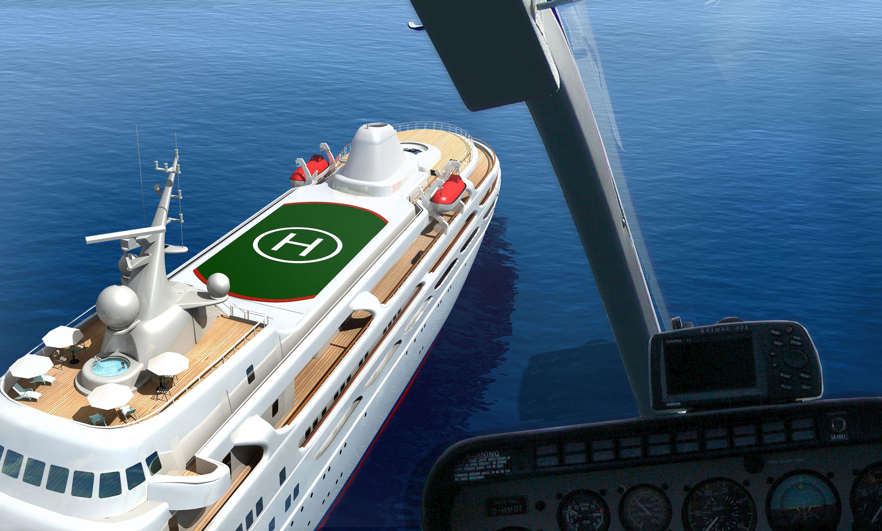 Project Y910 additionally offers more than 25,000sf/2370m2 of accommodation and entertaining space, with more than 14,000sf/1360m2 of open space. Renderings/plans feature two pools (75sf/7m2 and 86sf/8m2) offering spacious gathering spots to soak up the sun and enjoy the scenery; two helipads; a helicopter lift/hangar; four tender garages to shuttle guests to and from shore in style; a large owner’s apartment on deck 6; two VIP apartments on deck 5, and 15 additional double-berth cabins on deck 4. Onboard garages will accommodate any type of vehicles, including all-terrain bikes, mini mokes, large SUVs, and a landing craft for their shuttle to/from shore.