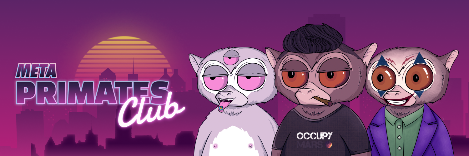 Meta Primates Club is a collection of 4400 generative Meta Primates, 32 rare and 12 legendary hand-drawn Meta Primates, every Meta Primate is stored as an ERC721 token on the Ethereum blockchain.