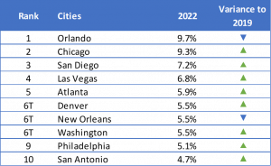 TUCSON, ARIZONA, UNITED STATES, March 22, 2022 /EINPresswire.com/ -- Utilizing the MINT+ events database, Simpleview, a leading global technology and software provider for the meetings and events industry, and Destinations International, the global trade association for convention and visitors bureaus (CVBs), identified the destinations that will be hosting the Top 250 conventions in 2022.The Top 250 conventions have at least 3,000 rooms on peak night and change meeting locations. Orlando will host the largest number of the top 250 events, followed by Chicago, San Diego, and Las Vegas.