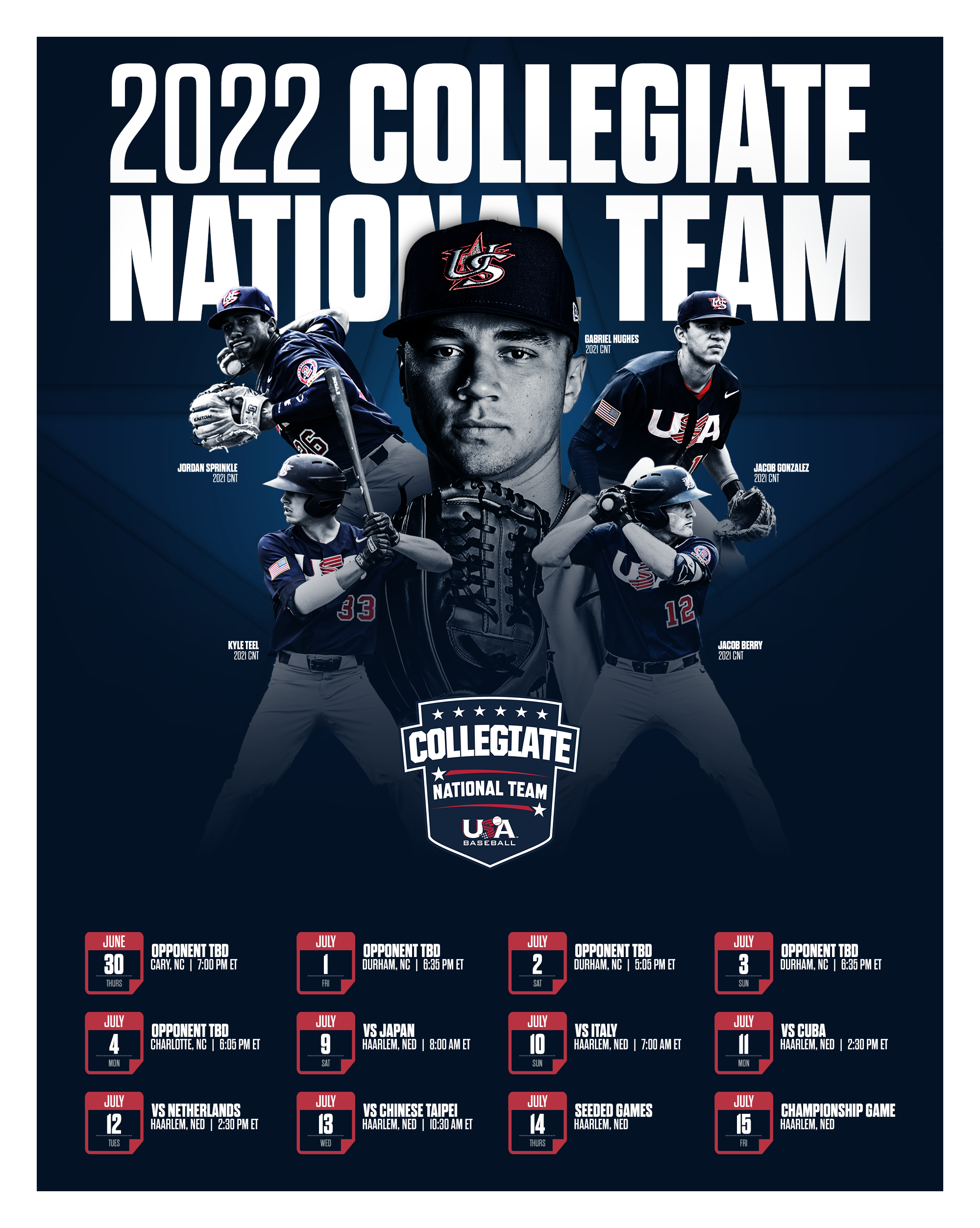 To round out its 2022 campaign, the Collegiate National Team will compete at the Honkbalweek Haarlem tournament. The U.S. will begin the event against Japan on July 9 at 8 a.m. ET (1 p.m. local time) before taking on Italy, Cuba, the Netherlands, and Chinese Taipei to close out group stage play. The second round of the tournament will then be played on July 14 ahead of the championship on July 15.