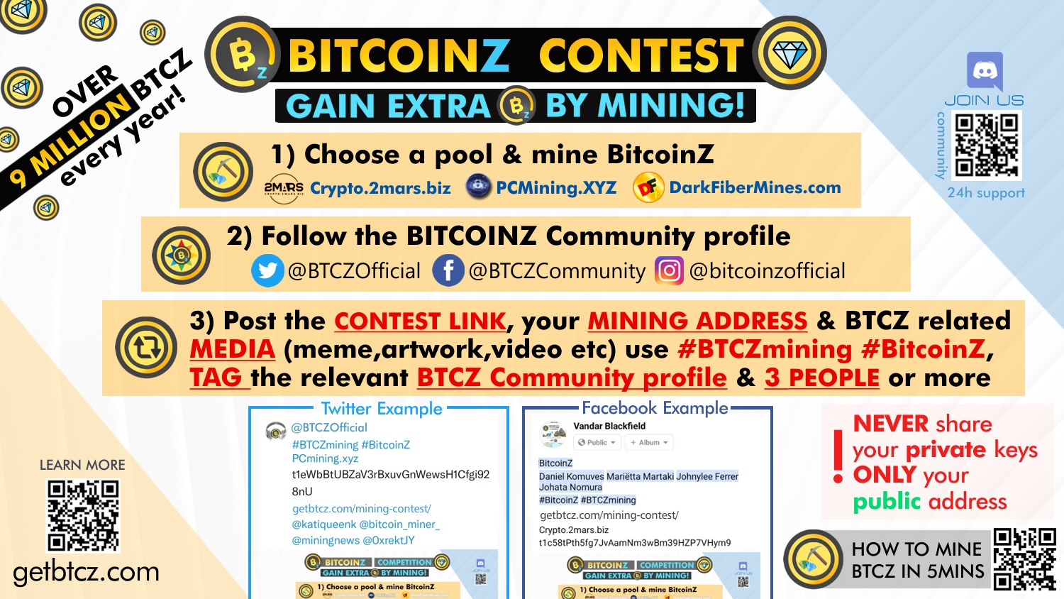The BitcoinZ Community Launches its First Mining & Social Contest with more than 9 Million BTCZ as extra Prizes per Year