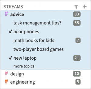 Improved management of settings, permissions and streams. Includes a new “Account & privacy” personal settings tab, increased permissions flexibility, stream settings organized into general settings, personal settings, and stream subscribers tabs, and a complete redesign of the stream creation menu to make it easier than ever to add users to the stream you are making.