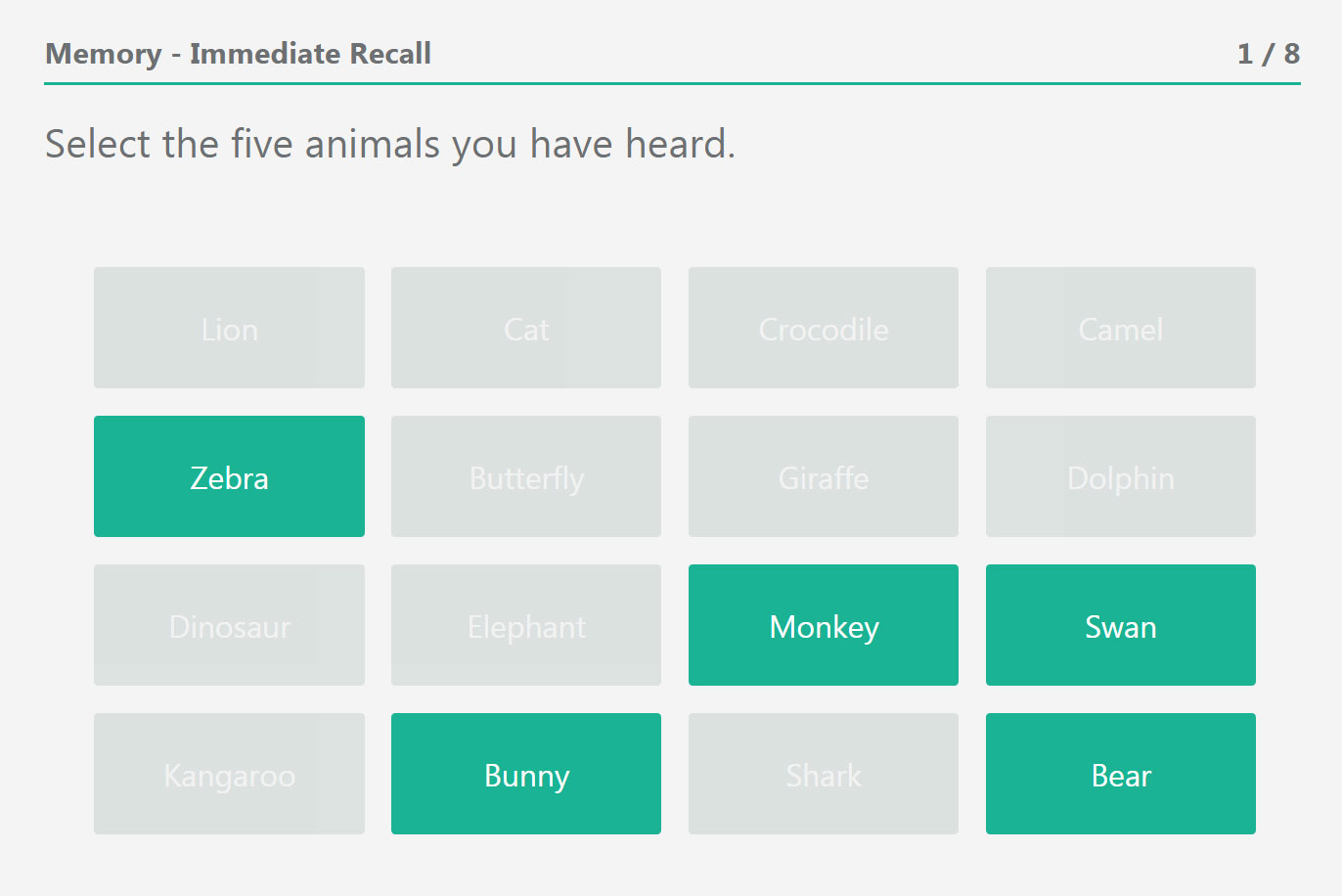 We recommend completing the test weekly, on the same day of the week, at the same time. After BoCA is completed, the domain scores and total score are provided immediately. Users will also receive an email with the link to the full report with progress charts.