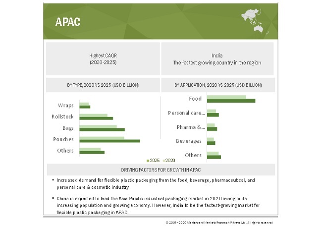 The APAC region is projected to account for the largest share in the flexible plastic packaging market during the forecast period.