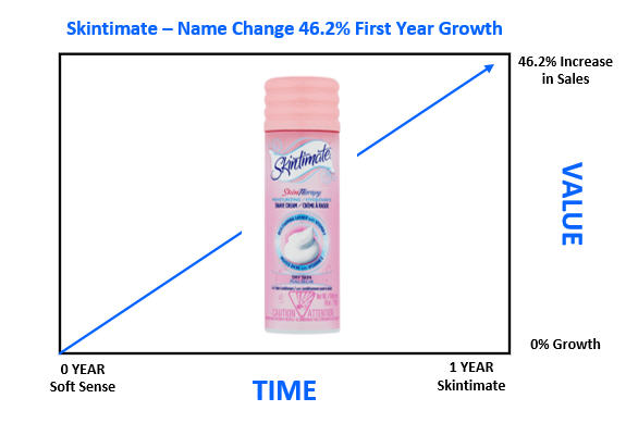 Skintimate is the # 1 selling women’s shave preparation in the U.S. NameQuest and SC Johnson partnered on this strategic brand re-naming initiative. Prior to the re-naming, Soft Sense was # 5 in the category.