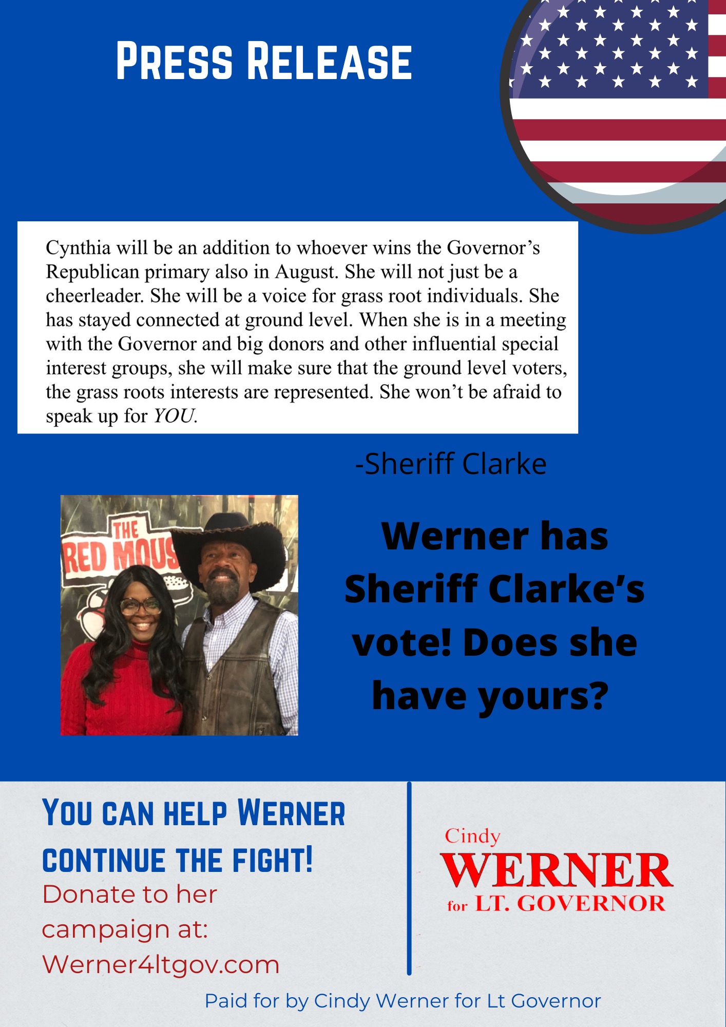 Sheriff David Clarke Endorses Cindy Werner for Lt. Governor-WI