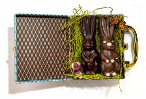 What is more traditional for Spring and Easter than the beloved Easter Bunny. MarieBelle’s classic Double Easter Bunnies Lunch Box features two classic bunnies, one milk chocolate and one dark chocolate.