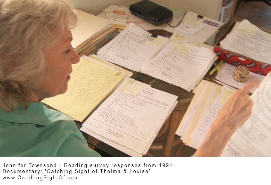 When the movie came out, Jennifer Townsend, a Seattle viewer, conducted a survey about audience reactions to the film. Hundreds of respondents completed the survey, but the results weren’t published at that time. Twenty-five years later, Townsend revisited the survey and tracked down women and men who had responded. Their personal stories are captured in Catching Sight of Thelma & Louise, a documentary that dives off the edge into the truth of women’s experience in the world.
