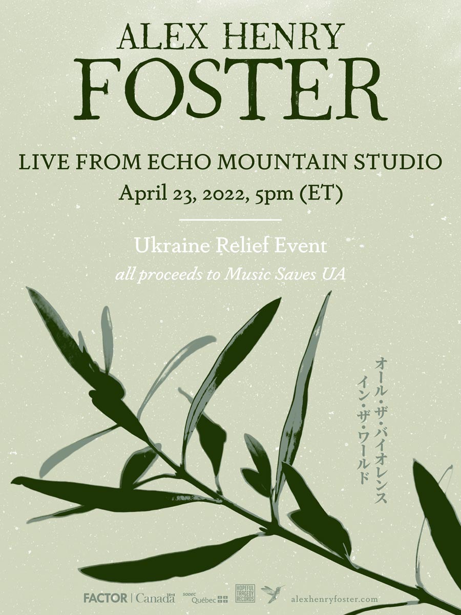 Alex Henry Foster Performs Ukraine Relief Event April 23 Benefiting Music Saves UA