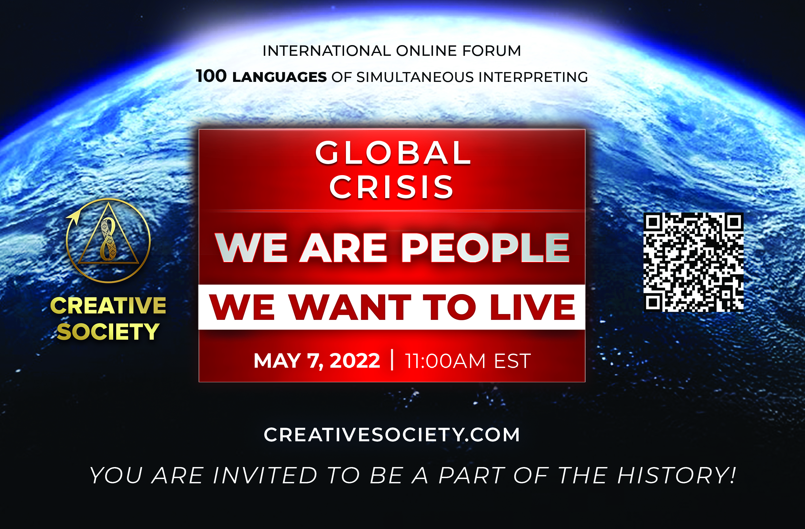 Information about the International Online Forum "Global Crisis. We are People. We Want to Live" is available on the official website of the Creative Society common project. Here you can not only watch the forum live but also get acquainted with the project itself and read the 8 Foundations of the Creative Society. The site also contains recordings of previous conferences, interviews with scientists and experts, news, and interesting articles.