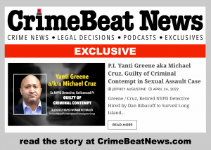 The CrimeBeatNews.com exclusive story features in-depth coverage and content from the trial, including explosive courtroom testimony and jaw-dropping evidence presented by former prosecutor Julie Rendelman, who cross-examined Greene a/k/a Cruz on the witness stand.
