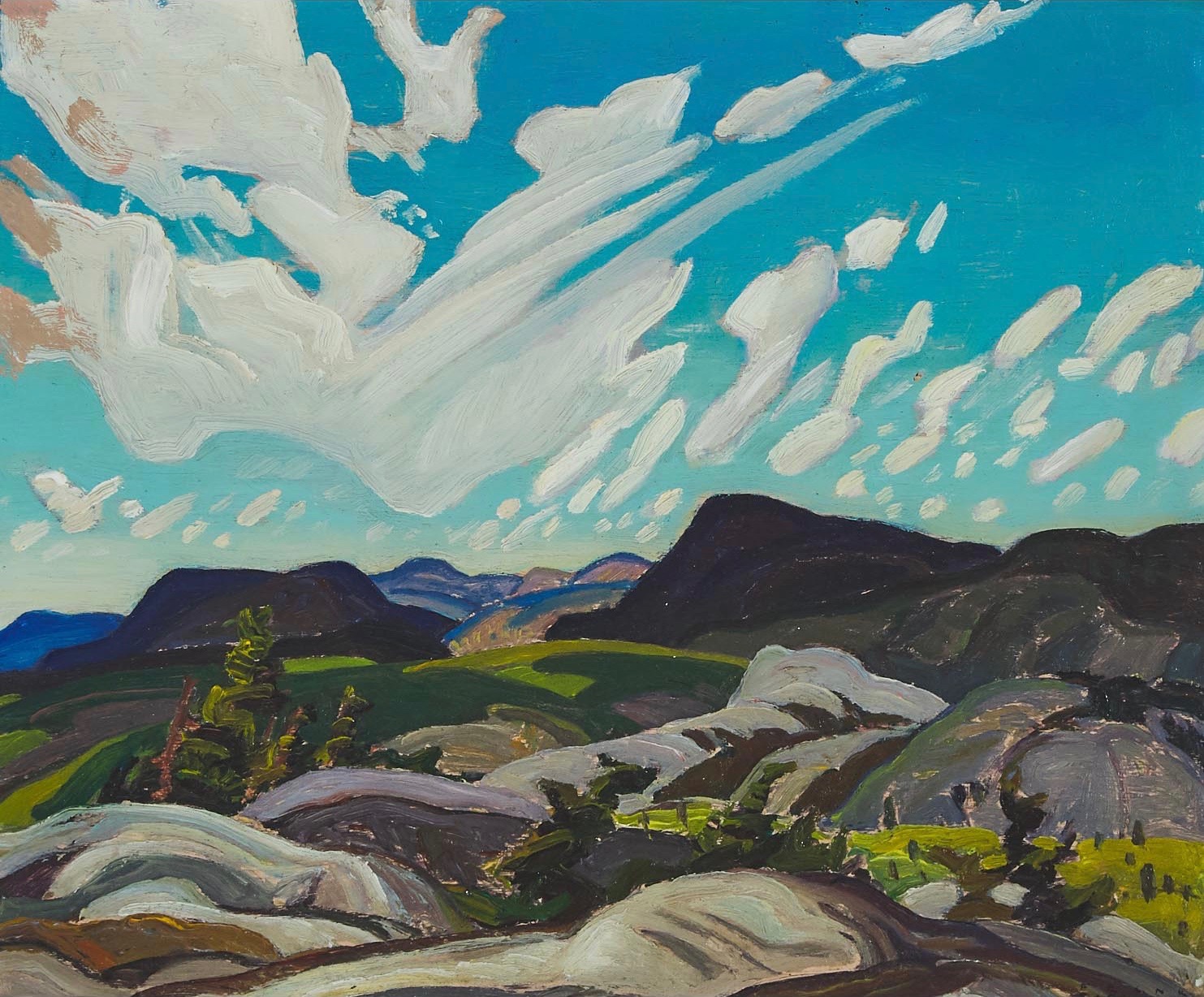 'July' is instantly recognizable as a view of Carmichael’s beloved La Cloche region, about 60 kilometres southwest of Sudbury in Northern Ontario–as synonymous with the artist as Algonquin Park is with Tom Thomson. Carmichael found in La Cloche a place that would provide stimulation and subjects for over 20 years.