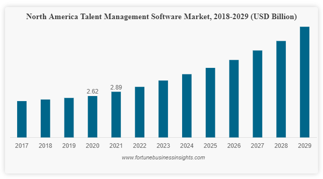 According to Fortune Business Insights, the global talent management software market size is projected to reach USD 17.66 billion in 2029, at CAGR of 12.1% during forecast period; Rising Footfall of Cloud-based Technologies to Boost Growth Prospect: Fortune Business Insights™
