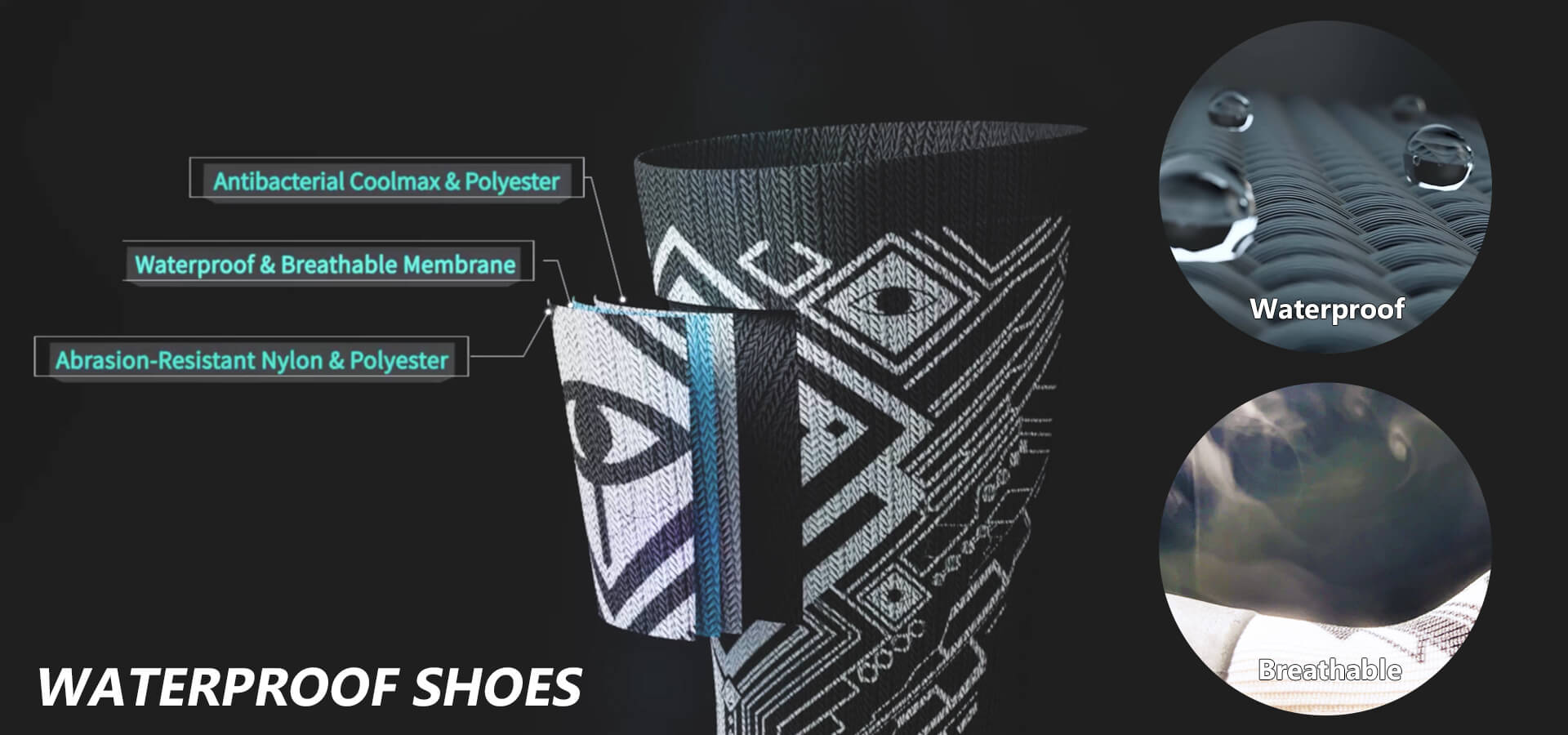 These waterproof shoes will revolutionize the footwear industry with their innovative design and state-of-the-art materials. These shoes are soft and offer 4-way stretching while extending up to the calf for higher water resistance. The shoes are firm, highly elastic, and fit snugly against your foot like a sock while providing appropriate support to protect your ankle from ankle sprain. In addition, the outsole is made of high-density material, which is light and soft, providing a good grip on different surfaces.