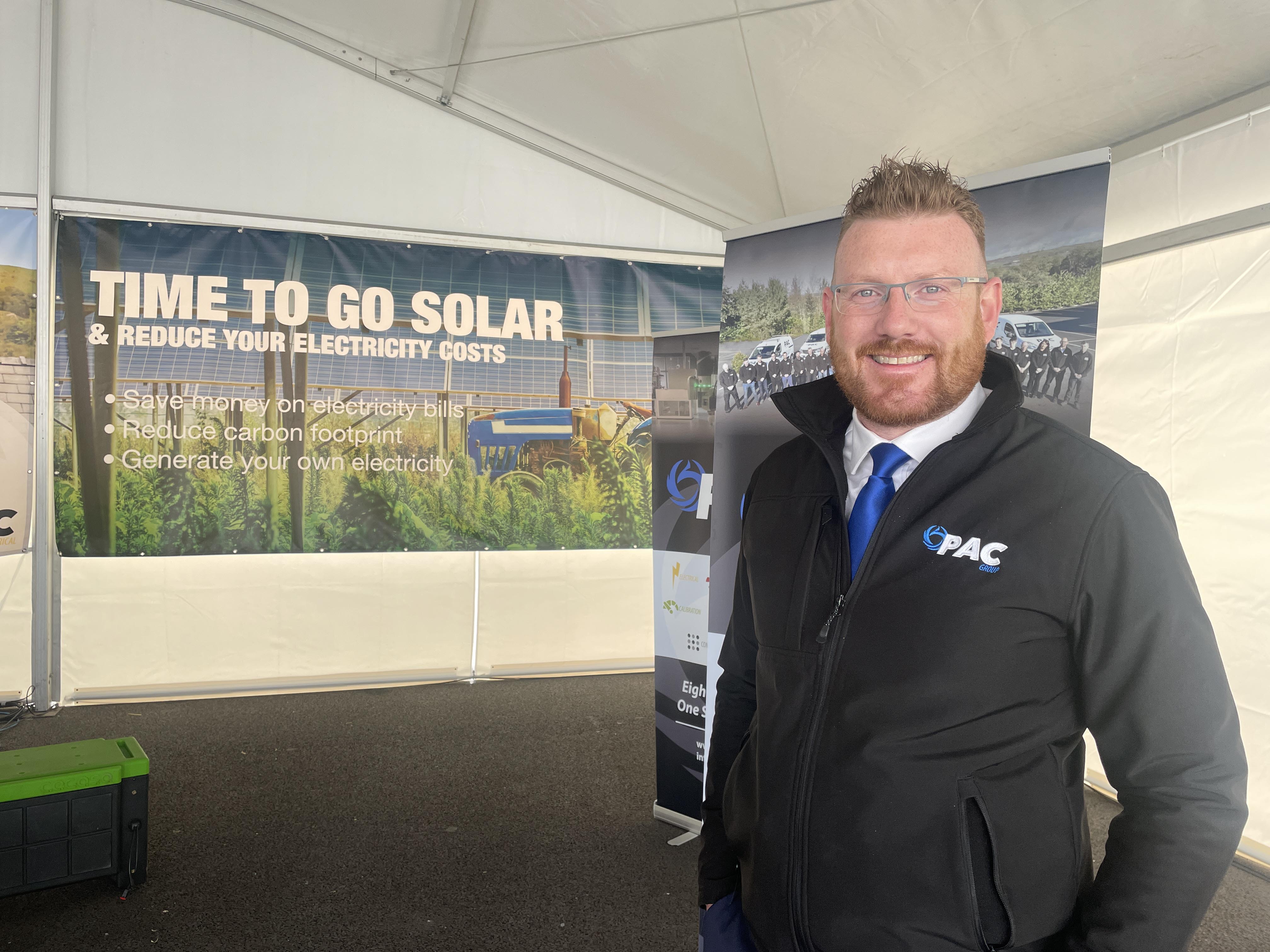 PAC Group Business Development Director Darren Leslie was one of PAC Group’s team at the Balmoral Show this week, explaining to farmers and householders the benefits of solar panels, but he said that there is an urgent need for the new Assembly to address the renewable sector.