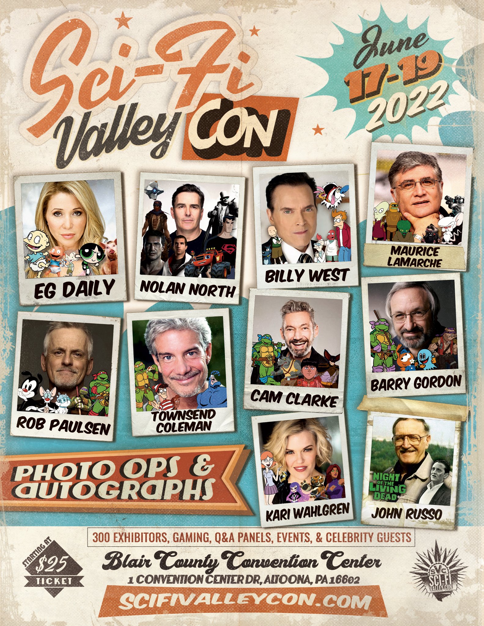 ALTOONA, PA, UNITED STATES, May 17, 2022 /EINPresswire.com/ -- Sci-Fi Valley Con is back in Altoona, PA at the Blair County Convention Center this June 17-19, 2022 for their 10th annual convention celebrating all things science fiction, horror, cartoons, pop culture, and more.This year the show has legendary voice actors and actresses who have been in the cartoon and voice game industry for a collective experience of 350 years and over a total of 3,000 credits.