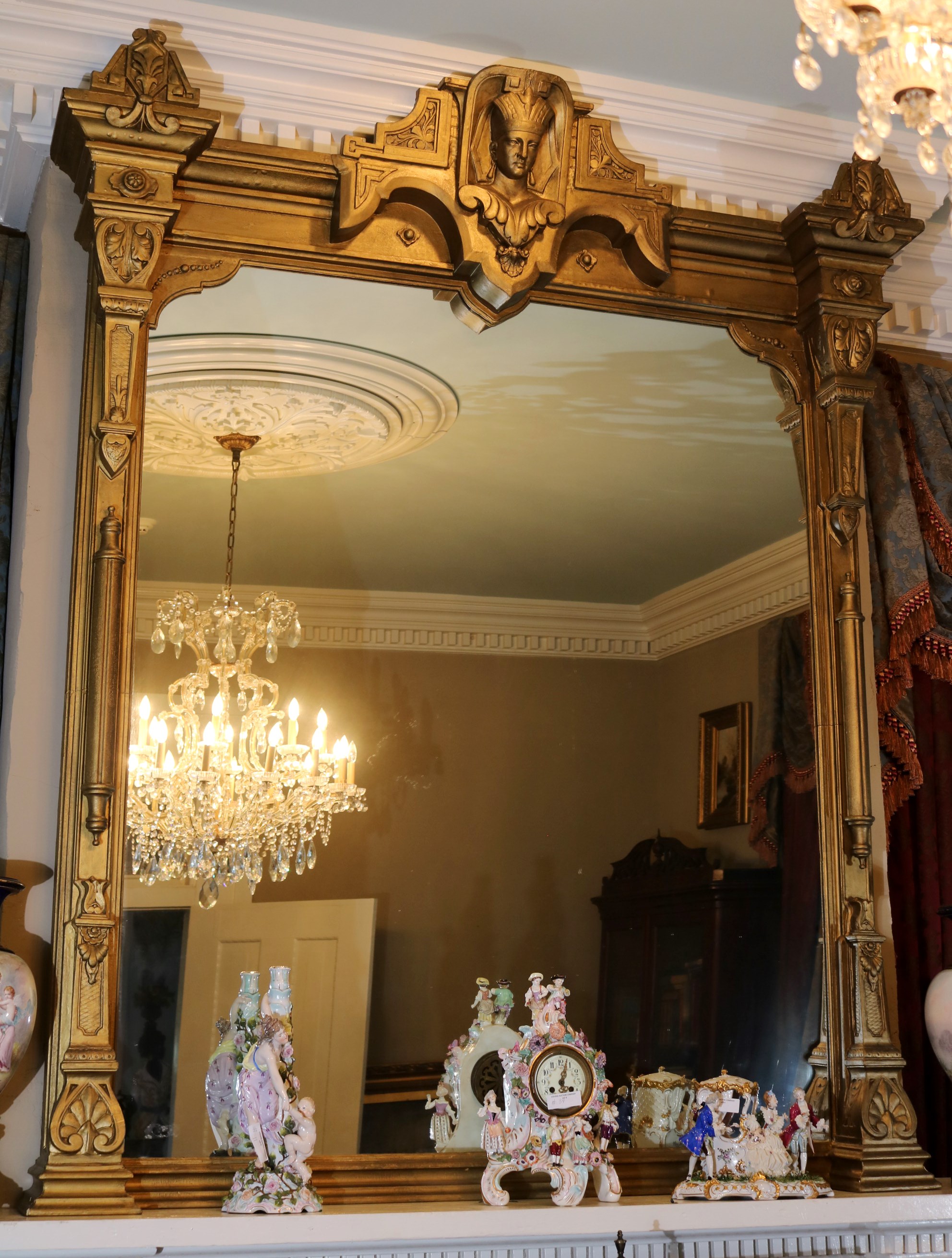 A pair of bronze blackamoors holding torches, signed Fondeur F. Barbedienne, 6 feet 3 inches tall, has an estimate of $4,000-$6,000; while a 1940s-era pair of hand-carved blackamoors, 79 inches tall, is estimated at $2,000-$4,000. Also, a huge gold gilded Egyptian style mantel mirror with Egyptian royalty crown, 87 inches tall by 70 ½ inches wide, should bring $3,000-$5,000.