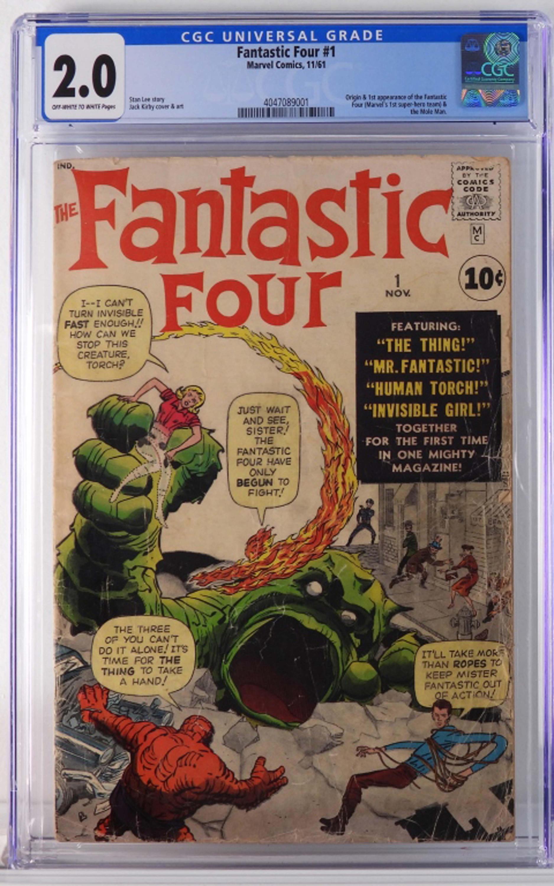 Copy of Marvel Comics Fantastic Four #1 (Nov. 1961), graded CGC 2.0, featuring the origin and first appearance of the Fantastic Four and Mole Man ($18,750).